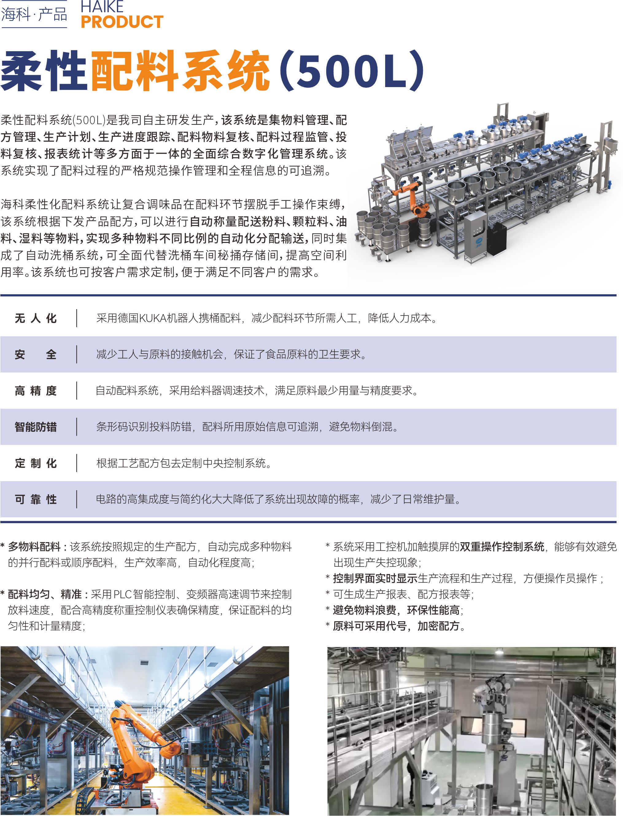 该系统是我司自主研发生产,是集物料管理、配方管理、生产计划、生产进度跟踪、配料物料复核、配料过程监管、投料复核、报表统计等多方面于一体的全面综合数字化管理系统。该系统实现了配料过程的严格规范操作管理和全程信息的可追溯。